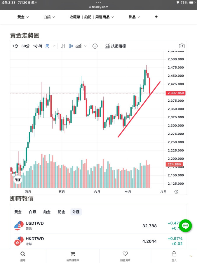 在台灣買實金就別下車,因為匯率的關係,台幣計算漲幅比國際價還高。