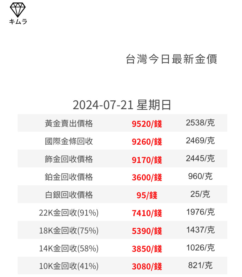 除了飾金回收。重量*9170*97%我比較不滿意之外