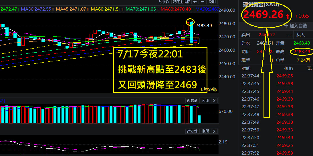 20年黃金新高紀錄7/17(三):2483美元/盎司