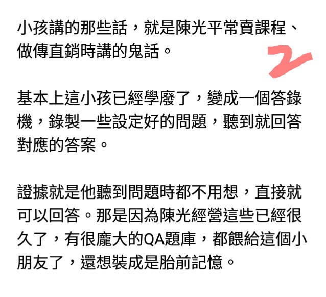例如;觀眾問到如何面對工作中的「逆境」,對於「逆境」一詞這位曦曦老師出現了語塞,還要旁邊的主持人爸爸來「稍作」解釋,要知道此時的曦曦在影片開始的時候就已經說過自己通曉周易、道德經等曠古絕今艱澀難懂的鉅作,要知道書中的用字遣詞所包含的數理、哲理、玄機更是層層堆疊如同萬丈深淵,那麼為何神童卻需要旁人來解釋「逆境」?就算是沒聽清楚,但是在當時的環境、觀眾的問題前面的字句依照一般邏輯便能自行理解出「逆境」是沒聽清楚的關鍵詞,不然應該是反問觀眾:你說的是「逆境」嗎?但是曦曦的反應卻顯見非常態,所以……