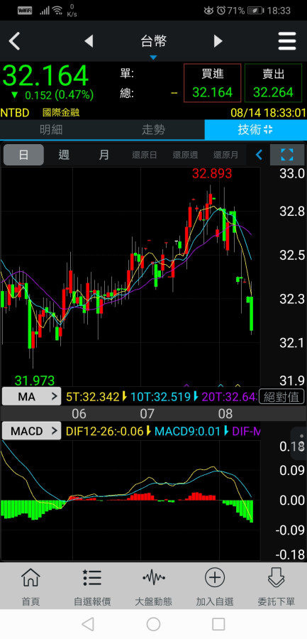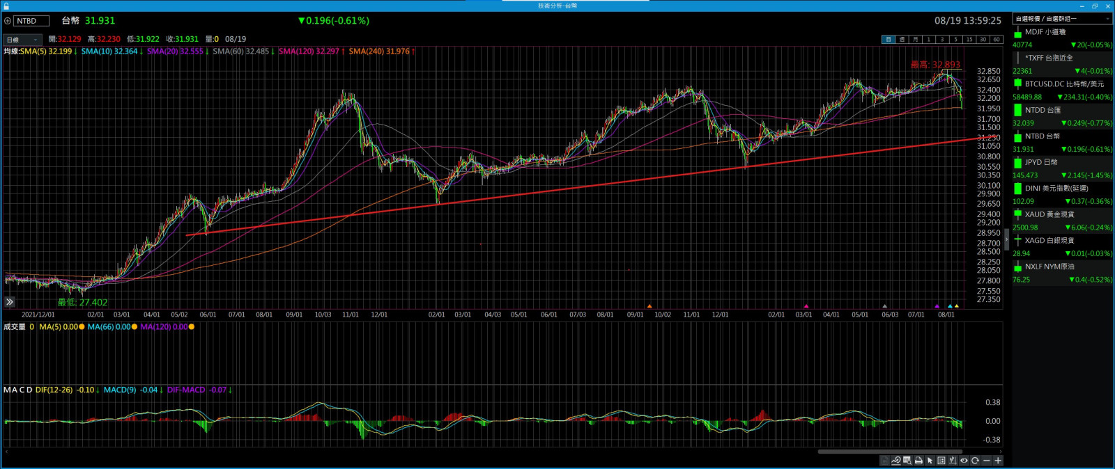 跌破32了,我覺得等台幣升值到最高點,台股就做好頭了。😭