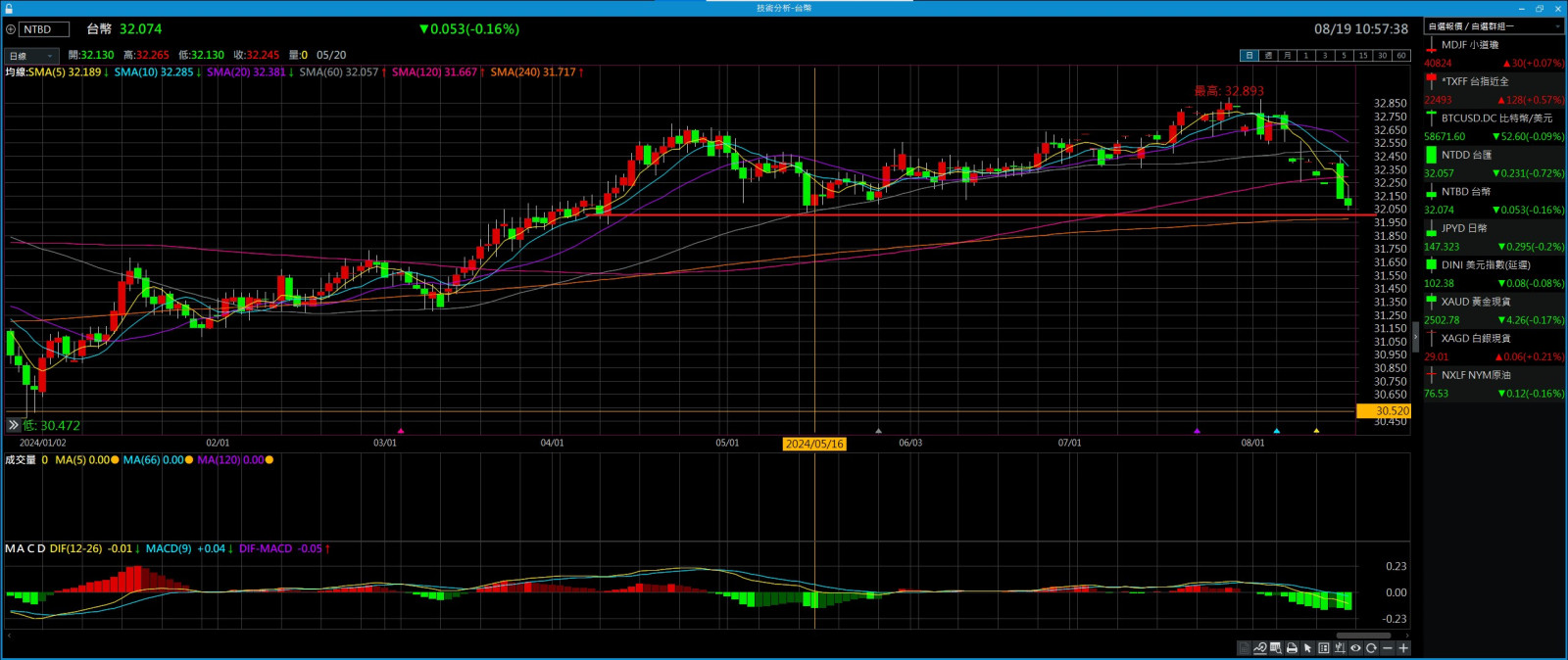 32是美元很重要的支撐,有效跌破恐造成M頭型態...