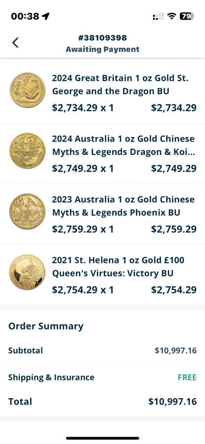 澳洲伯斯金幣,加拿大楓葉金幣,美國水牛金幣,英國皇家金幣…太多選項了都非常好的品質,只要是4N的或5N的,只怕錢不夠多,想收藏金幣永遠買不完,黃金永恆的愛給不完。