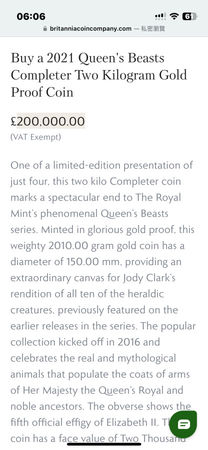 回覆 多多益善:這一顆金幣竟然有2公斤重,要申請輸入許可...