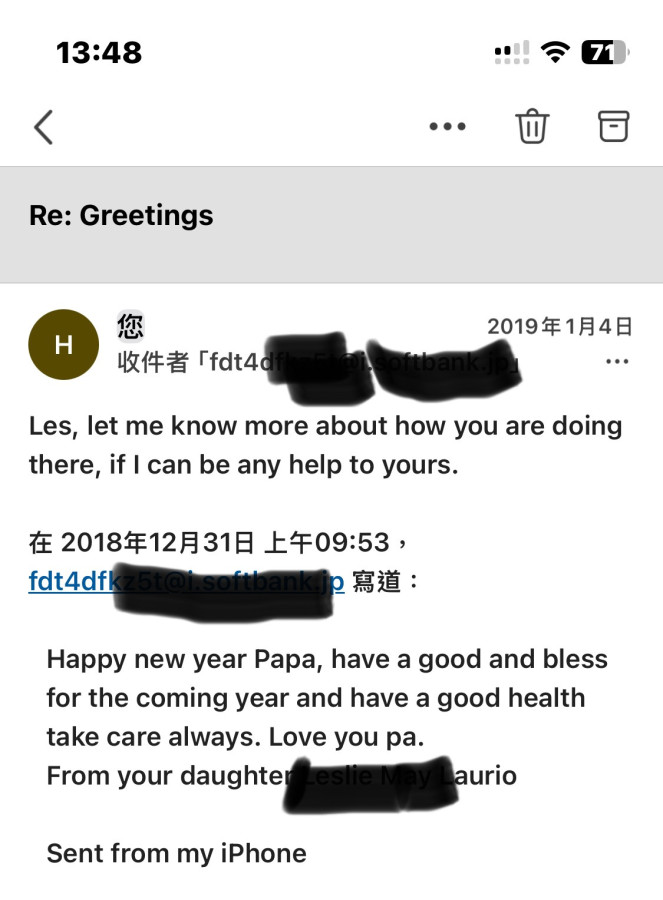 哪有女兒不知道父親的訊息?就是因為那是異國認養25年的女兒。過年過節噓寒問暖,有勝過子女親生。這種感覺感覺給人比黃金還要溫暖有價值。