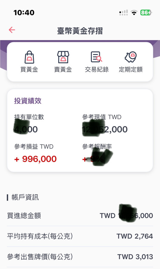 黃金現貨早在每錢9260台幣第二次all in早已彈藥用盡啦了哈