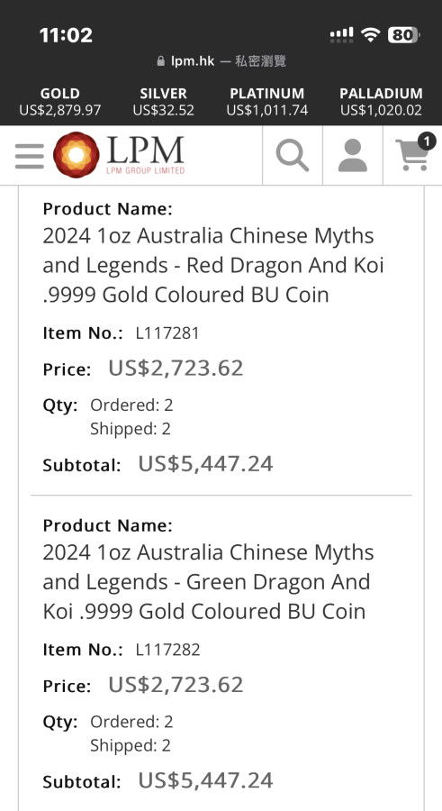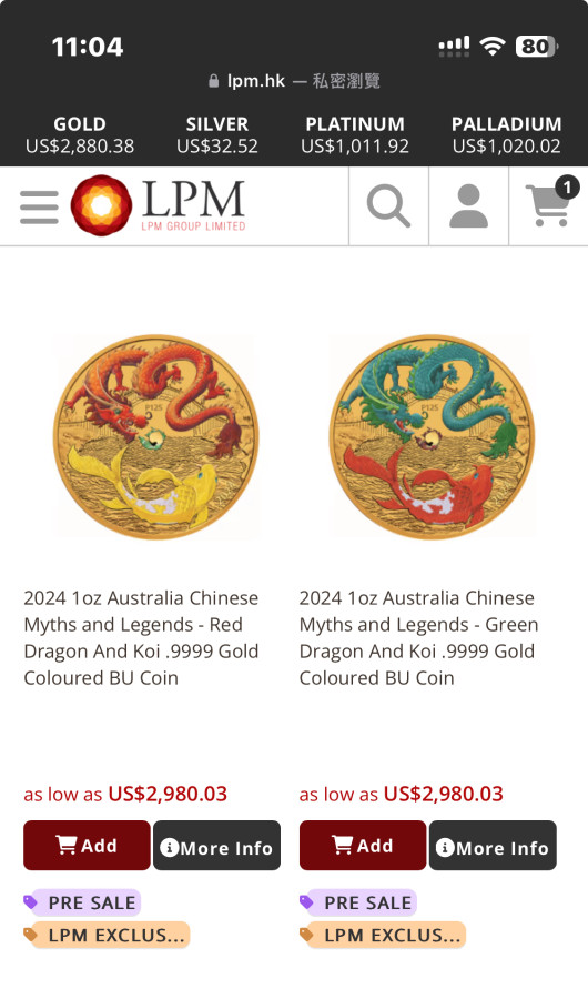 另外新加坡這裡的金幣款式沒有香港LPM多 新加坡這裡好多款式買不到