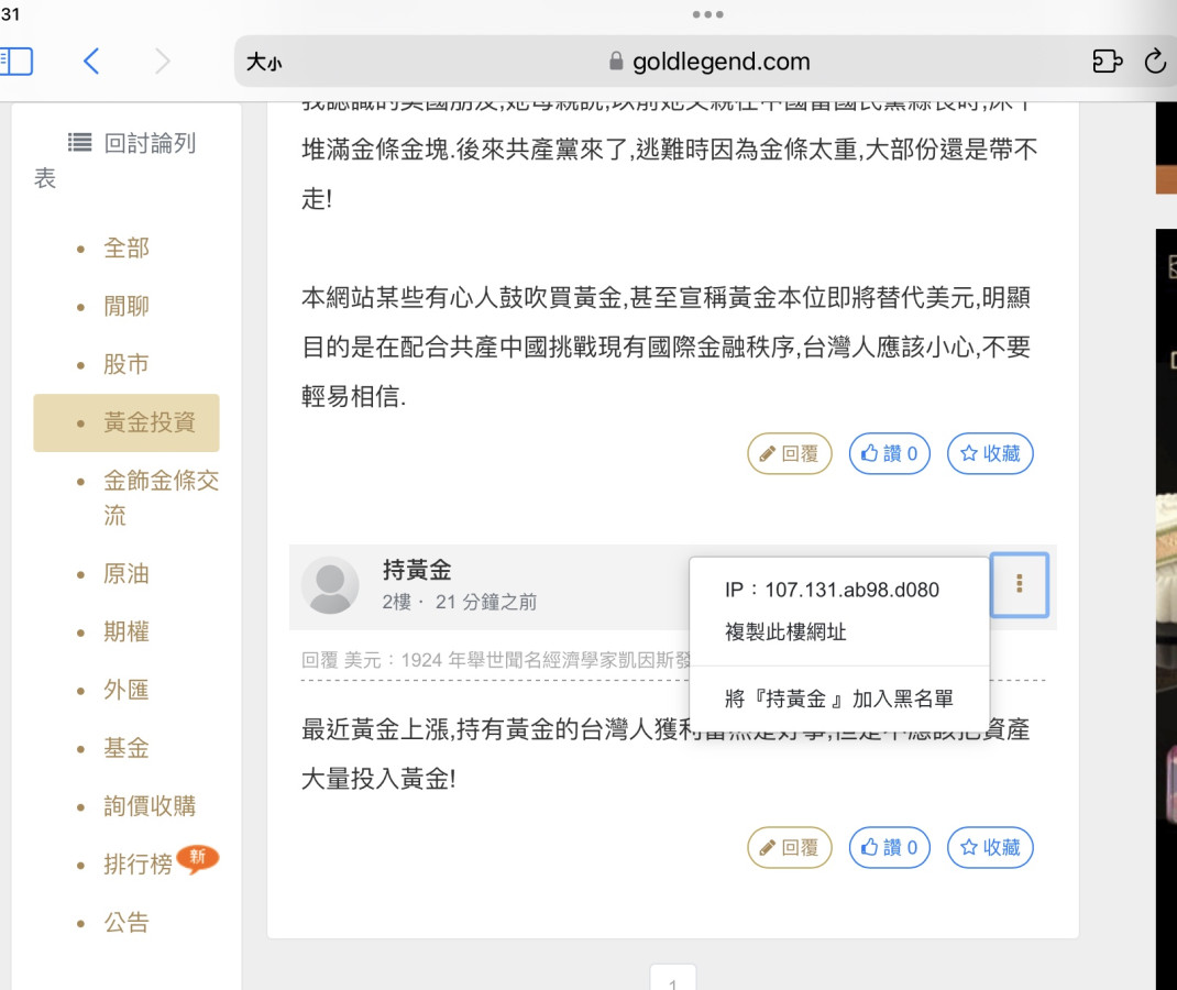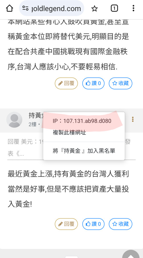 本網站某些有心人鼓吹買黃金,甚至宣稱黃金本位即將替代美元,明顯目的是在配合共產中國挑戰現有國際金融秩序,台灣人應該小心,不要輕易相信.