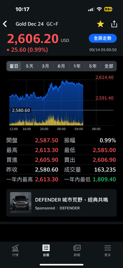回覆 藍天蠍:黃金本星期收報2580,最高上到2586...