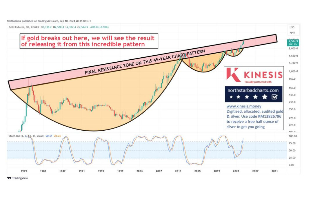 “This is a technical chart pattern for the ages,” posted precious metals analyst Northstar. “It's likely to find its way into financial & economic papers, studies and history books of the future.”