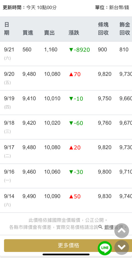 個人偏好一兩含以下的條塊,話說9月份一直再觀望,都沒進貨