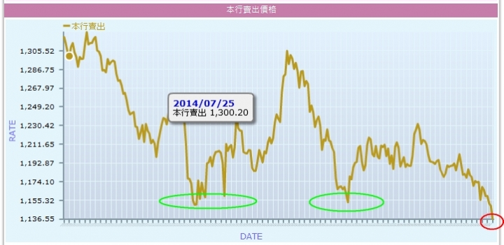 再看一下 台銀美金計價黃金賣出 就知道了 ......