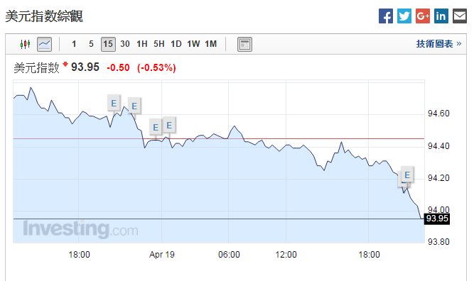 回覆 單細胞:因為美指跌破94,還在繼續往下...