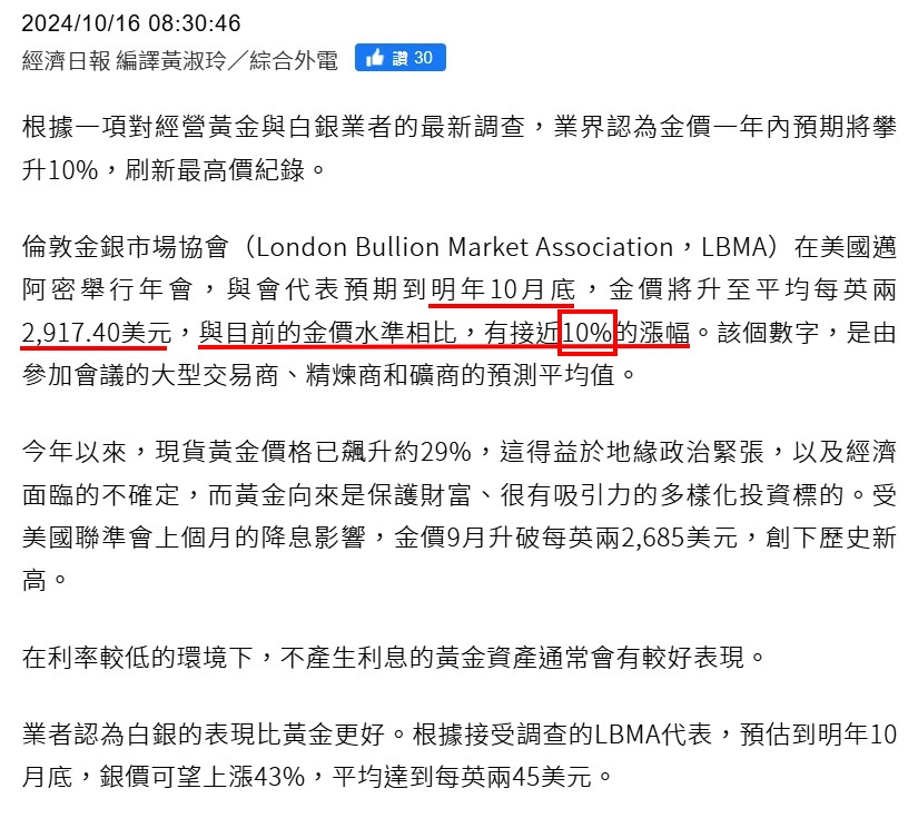 這些人預估明年10月底金價的平均值只有2917 😂😝😜
