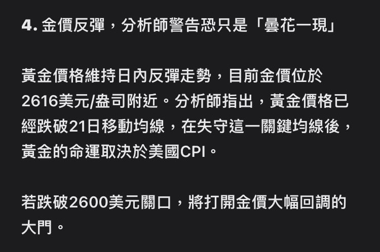 回覆 Gain:金價能不能挺住就看CPI了,挺不住就有機...