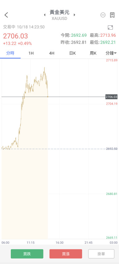 回覆 藍天蠍:今日最高上到2711.98。現在是...
