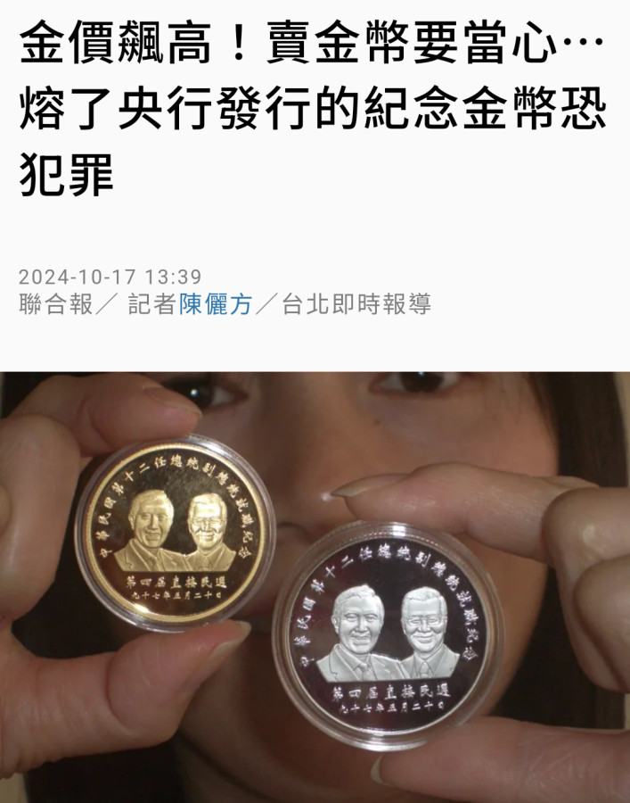 回覆 利金顫:看到這新聞真生氣,央行金幣不能賣銀樓,這...
