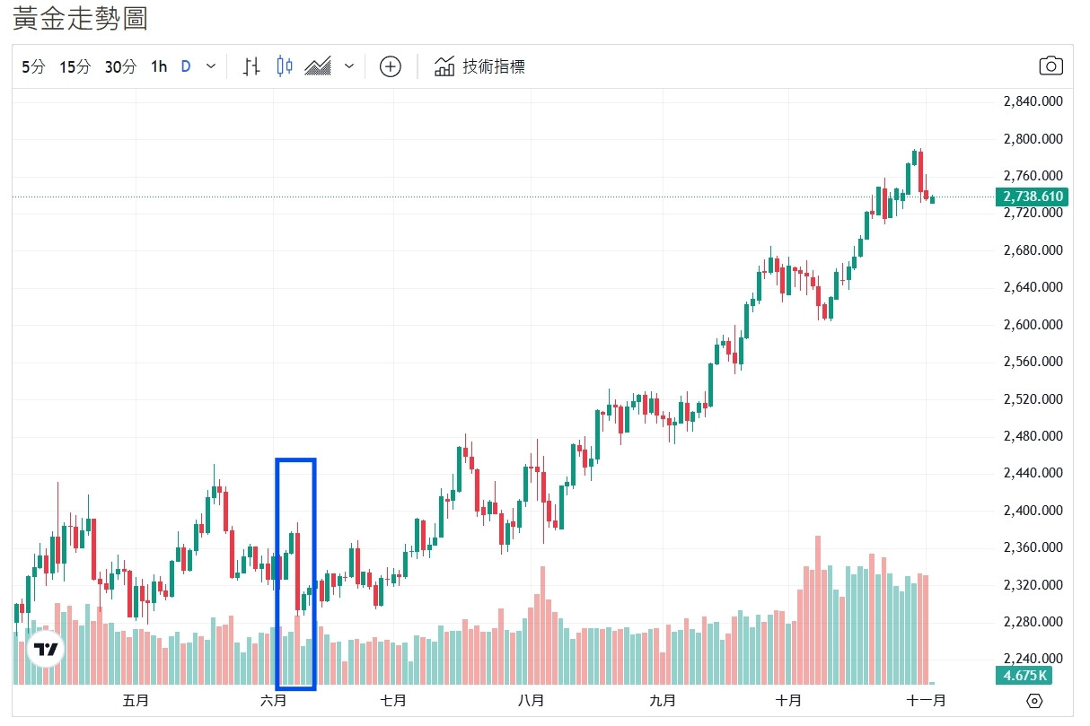 黃金走勢充滿市場的干預, 別看近期漲的猛, 單日要跌個100美元也是有可能的, 我常講的一個例子, 今年端午前就因為一個中國央行停止增持黃金的新聞, 午後四點歐盤一開就狂跌50元, 美盤再接盤又跌50, 就只因為一個消息導致單日跌超過100元, 除此之外後續又橫盤兩個月, 到八月才又恢復上漲趨勢。