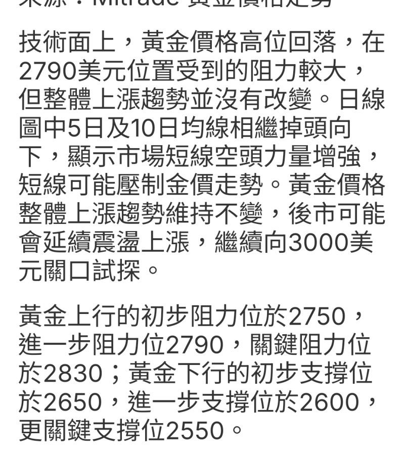 單一投資人的個人意見, 純粹貼出來讓大家參考。長抱黃金避險或是想逢低再加碼買進的金友可當成參考, 記錄一下, 日後回來比對做個驗證。