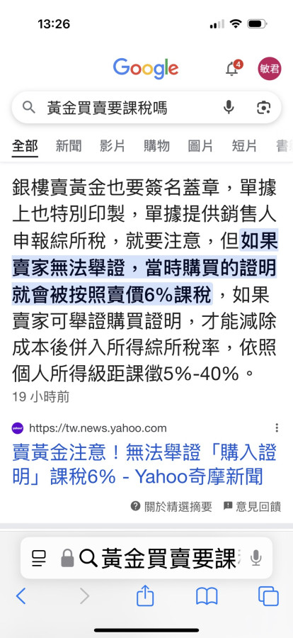 賣出實體黃金條塊,金額超過5萬,店家會幫你申報6%的[一時貿易所得],它是“所得”,不是“稅”,不是店家預先幫你扣繳“所得稅”。