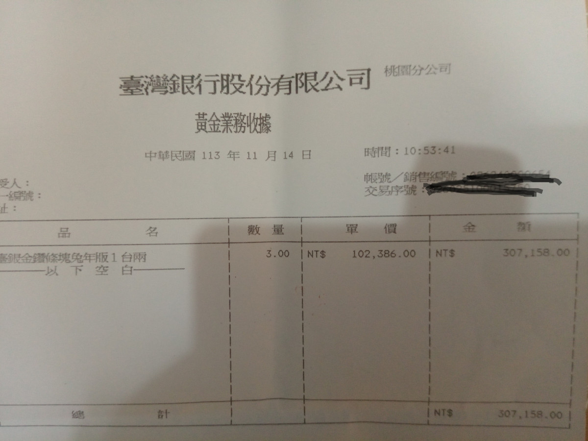 購買時要填單子,審查身分證,留地址電話。至於收據為什麼沒有打上名字,我也不知道。我每次買時,收據都沒有打上名字。別家分行有沒有?要看看其他金友。總之,他們自留的單據都有買方詳細資料。