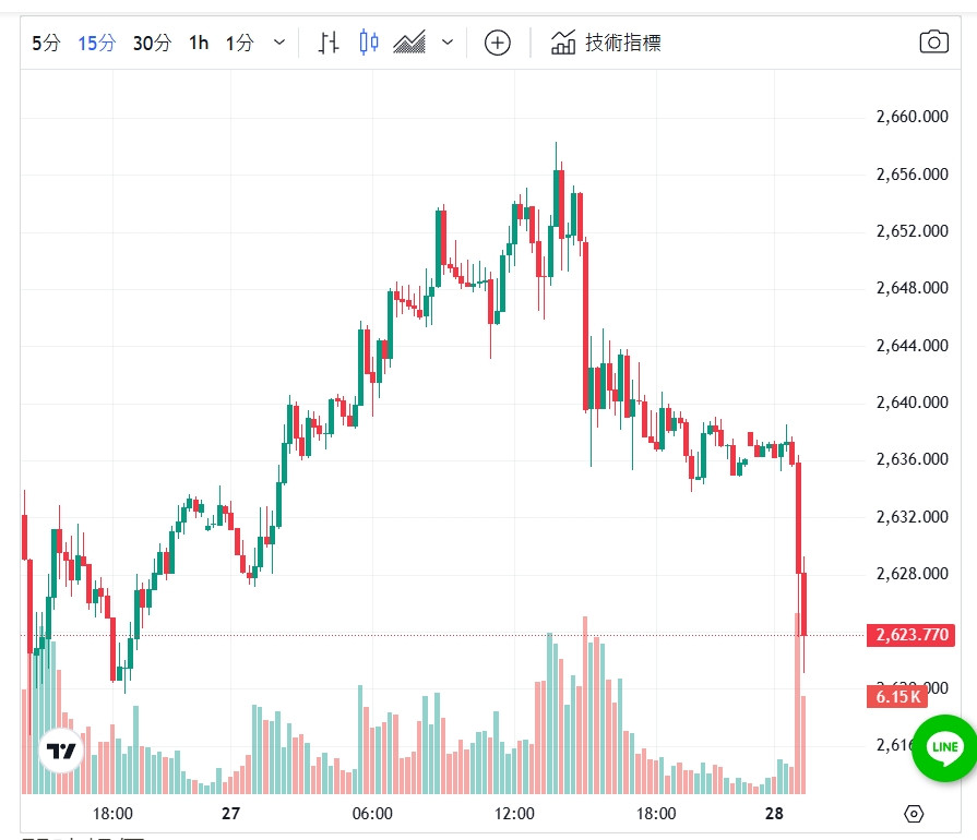 猜不透啊!我不賣他不漲,昨天我去展寬賣的時候剛好跌到2613,賣完開始漲漲到現在,漲了30多美元了,恐怕會一直讓我後悔賣,待時機再全買回來