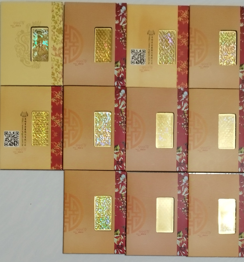 可惜星期天銀樓沒開,不然三天拿去賣還賺兩萬,不過還好昨天有趕快去買,老闆還問怎麼敢買這麼多?感覺到了就買。煌隆沒看過的不知道,精裝版保證書編號跟金條一樣,金條是密封,前後有框可以看,金條有壓克力盒,要檢查會破壞包裝,背面都有幻彩,偽造不容易,所以這11片都沒有人拆開檢查,老實說外面摸就知道質感,我還是有點眼光的,真的漂亮