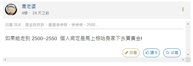 回覆 SLK:這幾年來的黃金多頭已漸漸地遠去,只留下一...