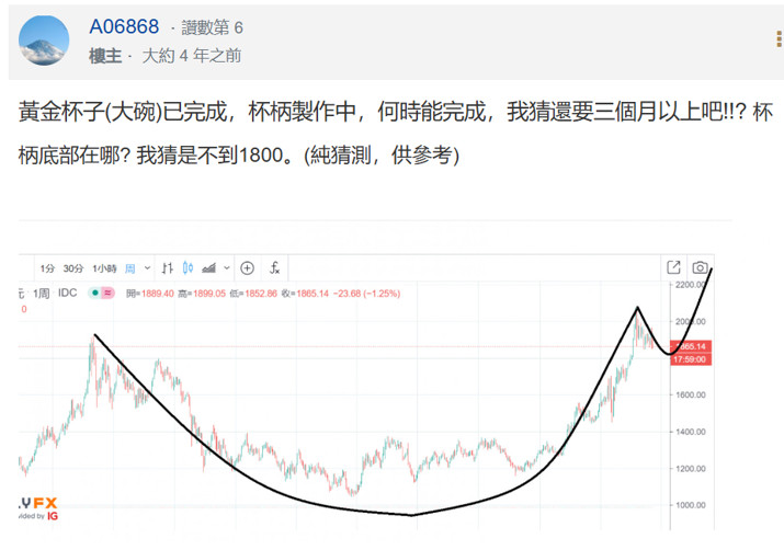 如圖2,如今杯與柄理論已經得到驗證,約10年完成的黃金大底(杯)又經過4年完成了柄的部分,柄的長度還剛好是杯的高度