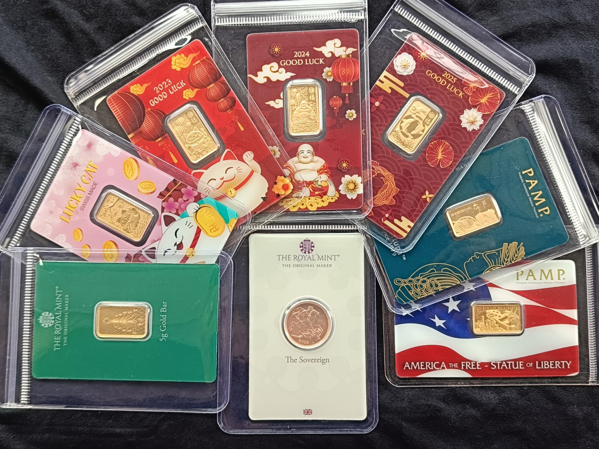 獅王孔雀金條,pamp 鯉魚蓮花。都有一盎司的。天鵝金磚你有了。這些我覺都蠻美的。