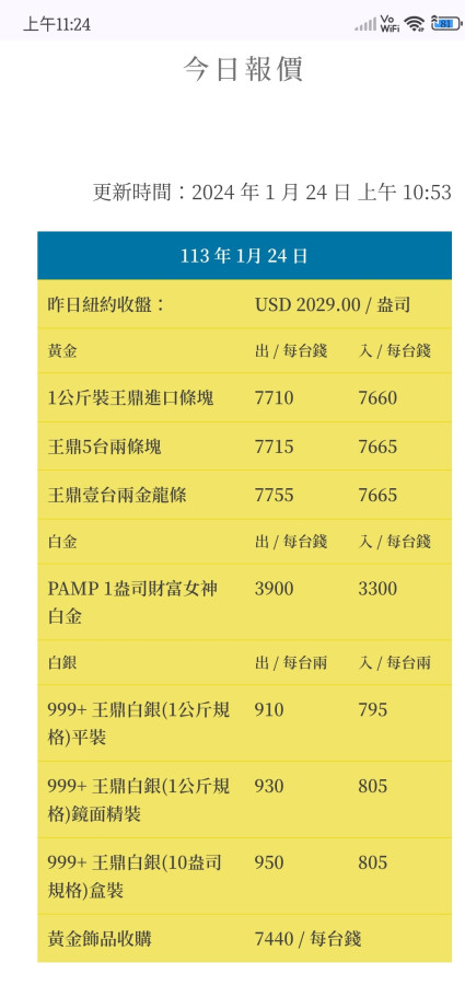幫各位算一下 到今年最後營業日1/24 台幣金價漲多少 10985-7755 除以7755=41.65 一年台幣金價剛好漲41.65% 一年前如果投入一百萬 一年賺41萬六千五佰元
