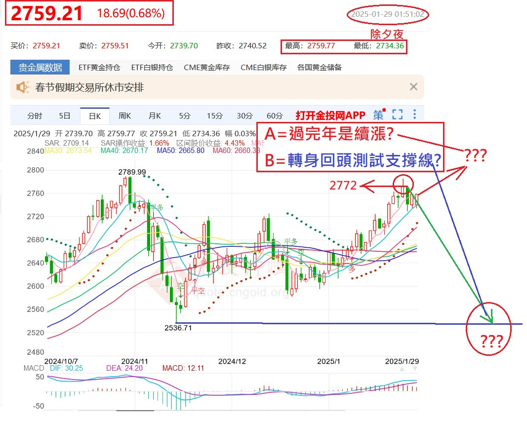 B=若漲勢暫止~改走回跌=那會跌至何處才止跌回升+續走2025多頭行情???