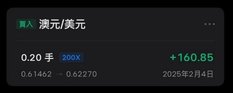 澳幣的確值得留意 , 我本來計畫把投資逐步獲利了結收現 , 停泊一些在澳幣可是資金還沒有撤回來 , 手上一些閒錢又遇到一個機會 , 買了 一檔標的因為這檔不跟美股有牽連 , 沒有安全疑慮 , 所以澳幣就在暫緩一下 ~