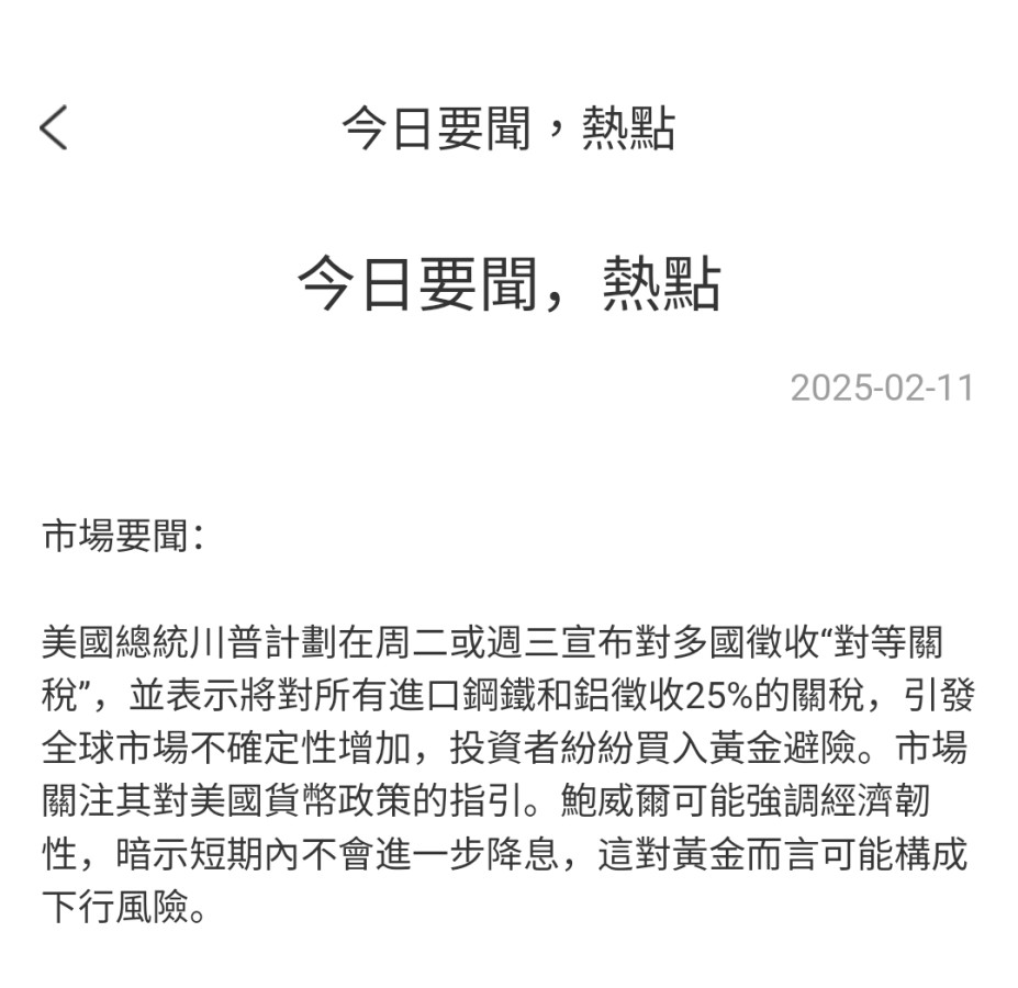 "特朗普突發重磅!特朗普剛剛正式宣佈關稅行動、貿易戰升級 金價驚人暴漲創歷史新高"