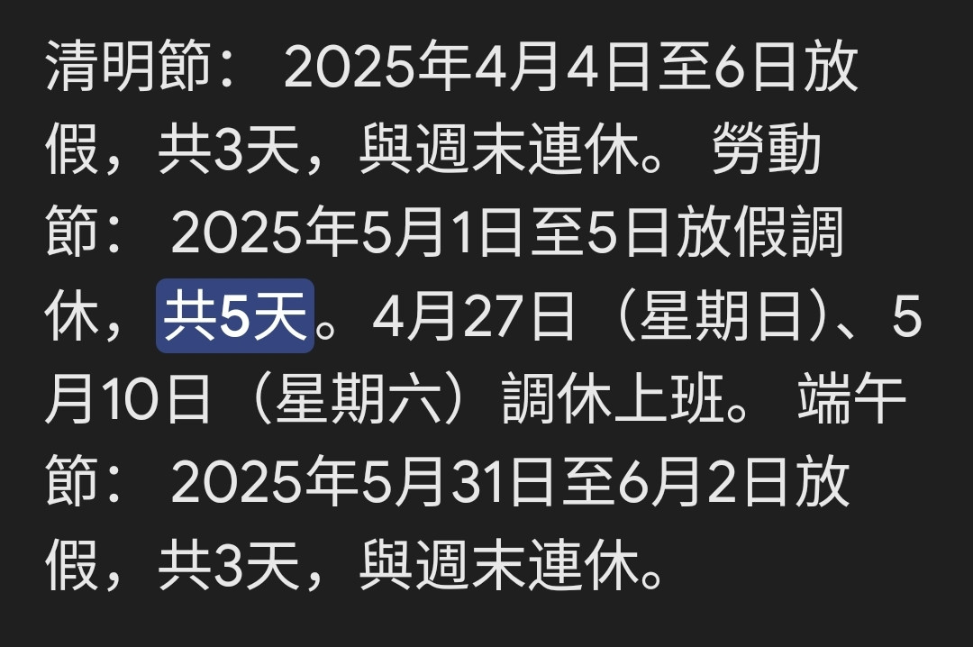 回覆 節度使:補個2025- 4/1-4/4節日大跌記...