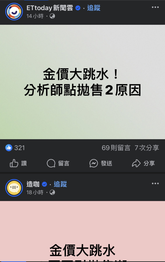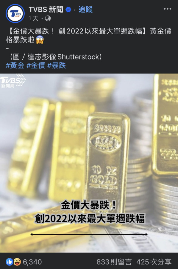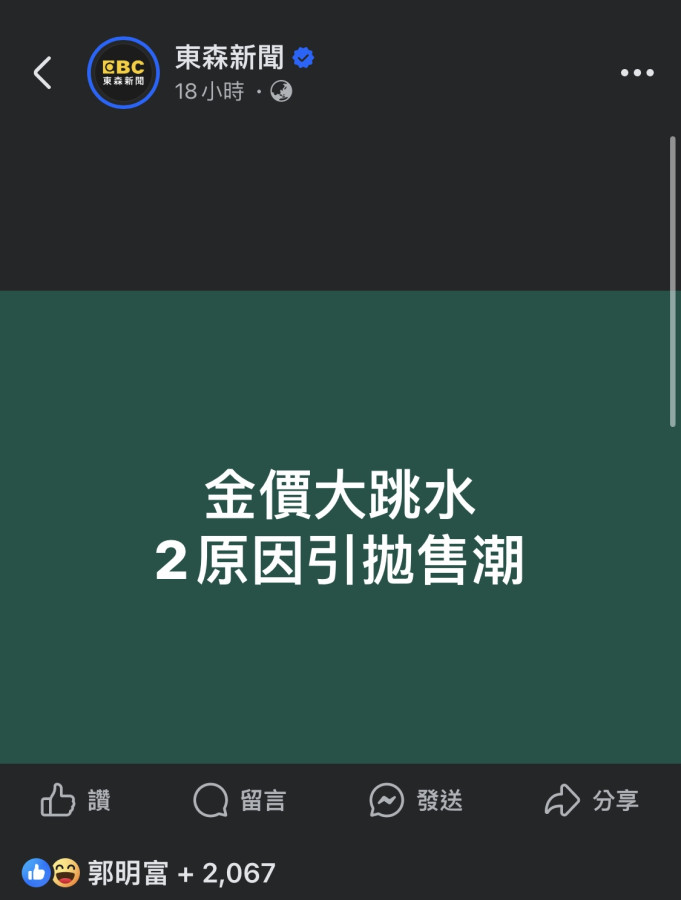 回覆 阿育:發現這二天FB的新聞都說《金價大跳水》幸...
