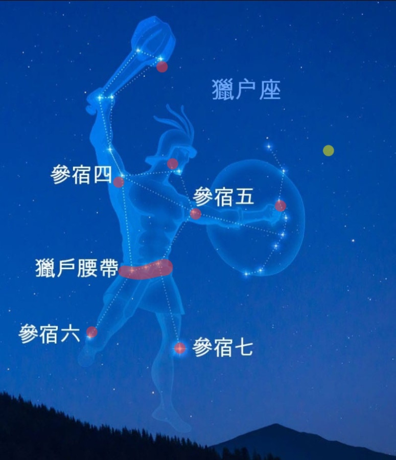 紅色是獵戶座可見星,