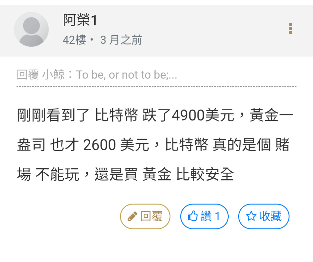 回覆 黃金萬兩美美:剛剛不小心瞄到比特幣, 太過癮了, 真的...