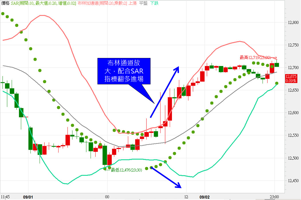 - SAR+加上布林通道訊號:操作應用=>如附圖說明