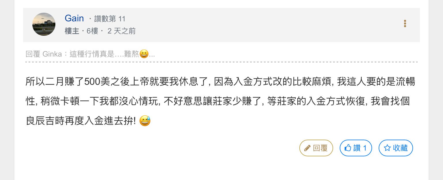 回覆 Gain:恭喜什麼?我收手三個禮拜了...