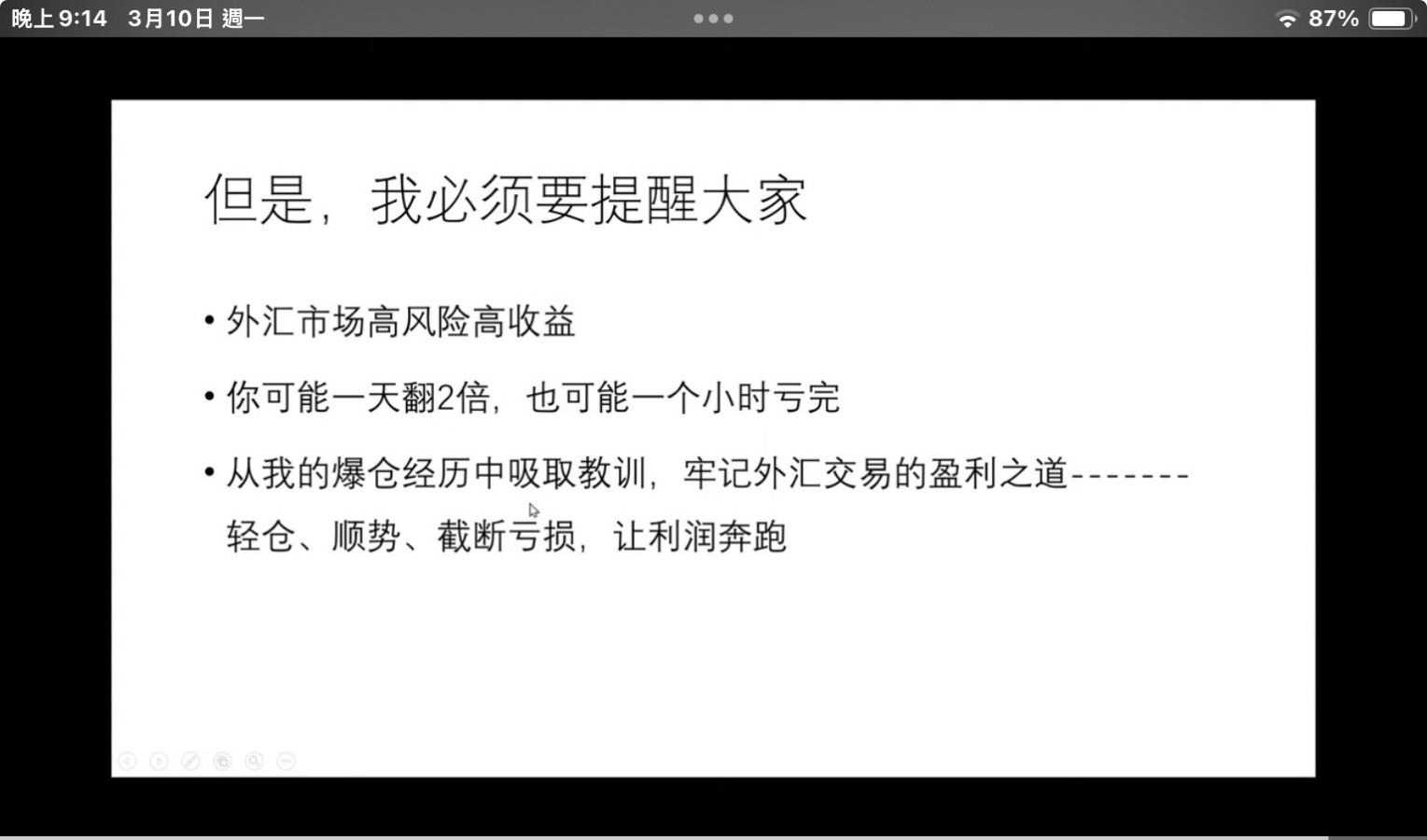 有講一些風險,就是降低手數跟槓桿,新手就0.1手,10倍,