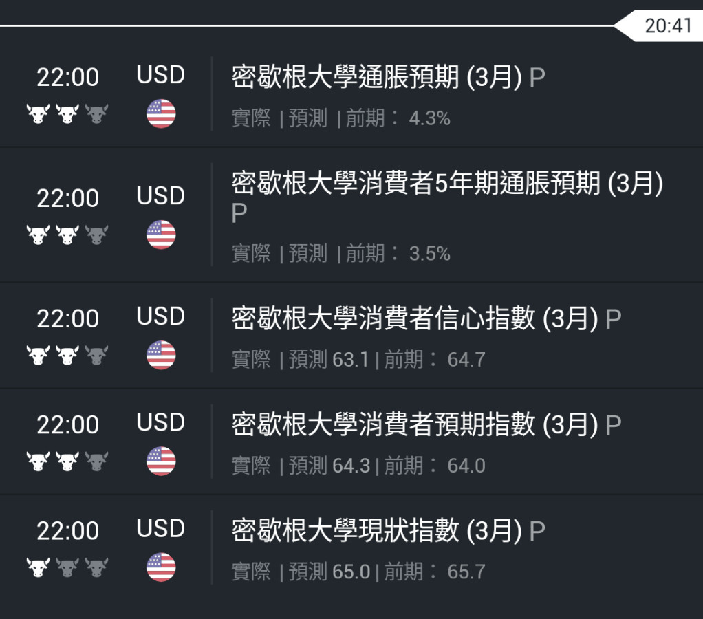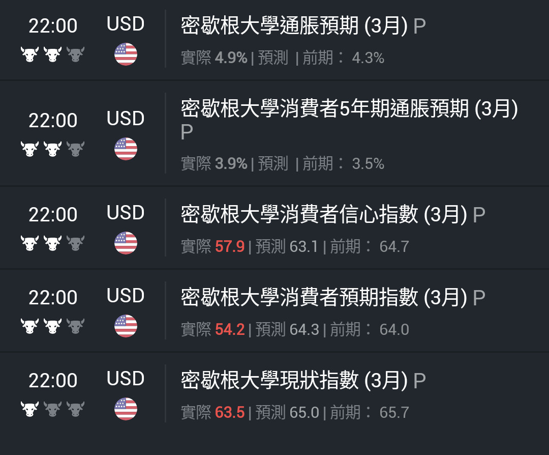 回覆 雄大:今晚我相信美國公佈密歇根大學消費者數據後...