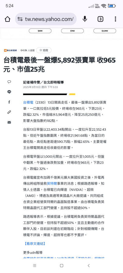 回覆 縁緣緣:昨天新聞還報導,一堆散戶搶進2330零股...