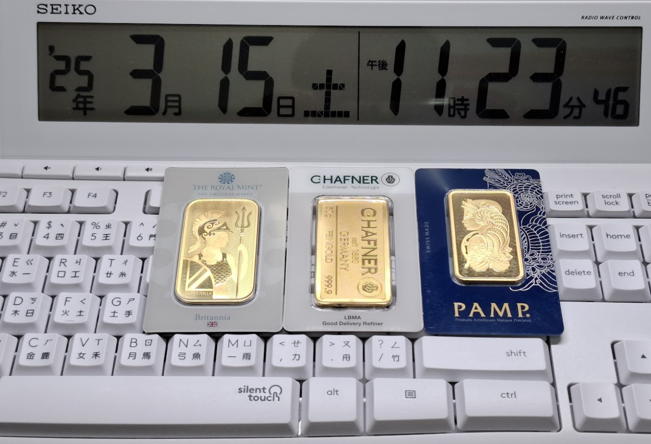 或許會有人說會跌,但別忘了也會漲,我個人都是以閒餘的錢購買,少進出,太太常說沒賣都是數字,沒錯爽而已,但87年給太太購買的生日禮物一兩金(當時一錢1300元),此時已快漲到10倍價格(現一錢12500以上了),時間是很好的因素,更重要的相信自己的判斷,量,越來越少,需求,越來越大,地緣,越來越亂,川普,越來越瘋,世界,越來越不平靜,期望世界和平,風調雨順,國泰平安,難,所以金價,越來越貴的大方向,容易