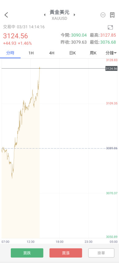 愚人節是川普的節日,隔天就是關稅開始日,金價跌不跌我不知道,台股肯定大跌,小跌300,大跌破500,台幣繼續貶,國際金價不動,台幣金價也會漲,老共天天大量飛機船艦來台灣附近玩,英勇的國軍將士當沒看見就不怕,媒體都懶得說了,黃金有錢買,沒錢吃飯就賣,一堆人家吃麵旁邊喊燙的人,就不需要理