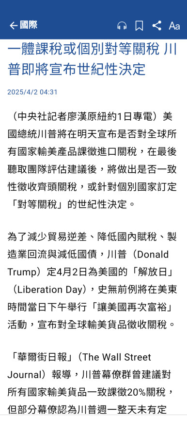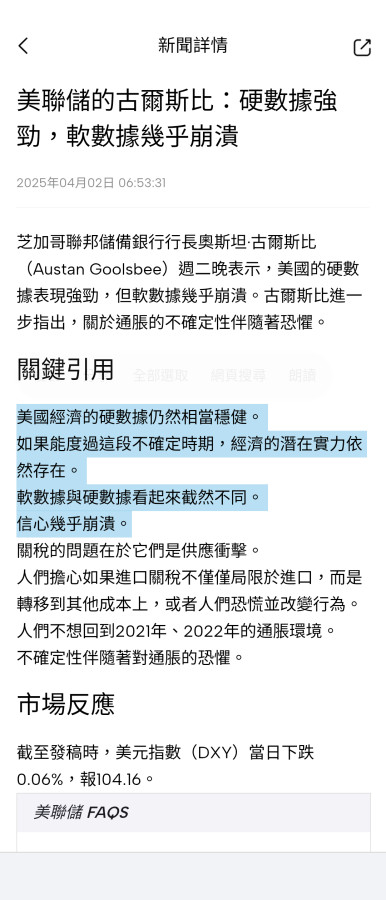 回覆 雄大:今晚公佈關稅星期三~五大非農準備爆雷...