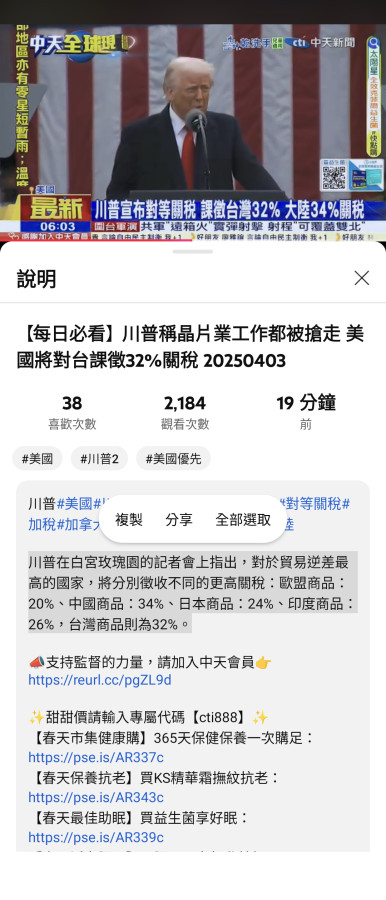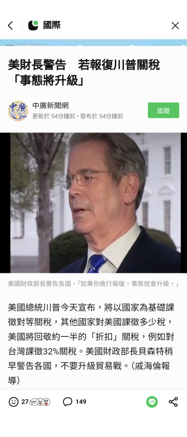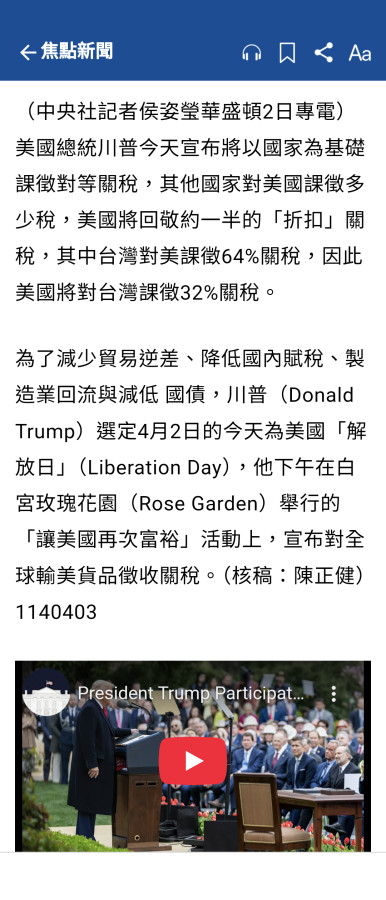 川普宣布基準關稅率10% 台灣將面臨32%對等關稅