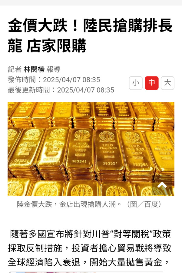 回覆 yesk:大陸不是黃金大跌恐慌賣,反而是趕快搶買黃...