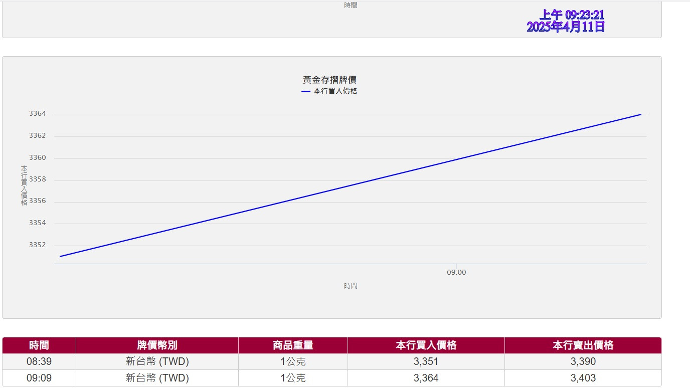 回覆 金贊:台銀今日開盤=第一盤價3390與第二盤價...