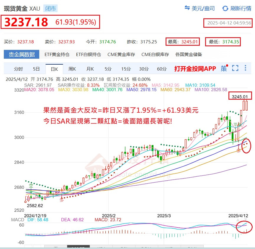 果然是黃金大反攻=昨日又漲了1.95%=
